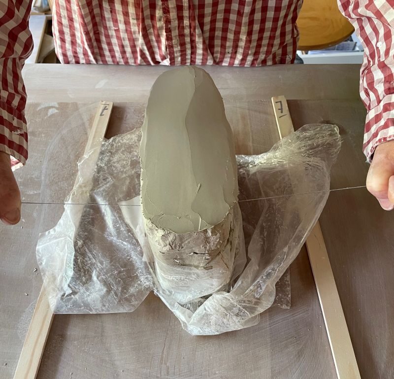 Tout commence par la préparation de la terre pour éliminer les bulles d’air et d’assurer la stabilité de la pièce lors des cuissons.