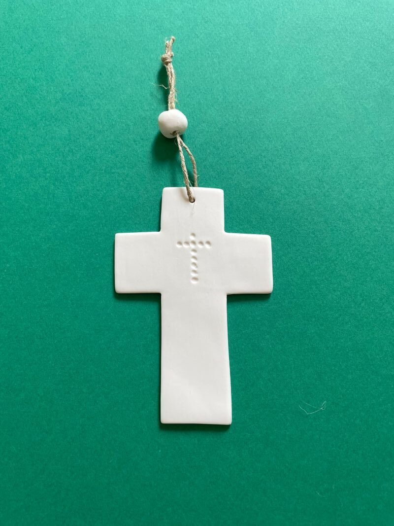 Croix blanche en porcelaine non émaillée.